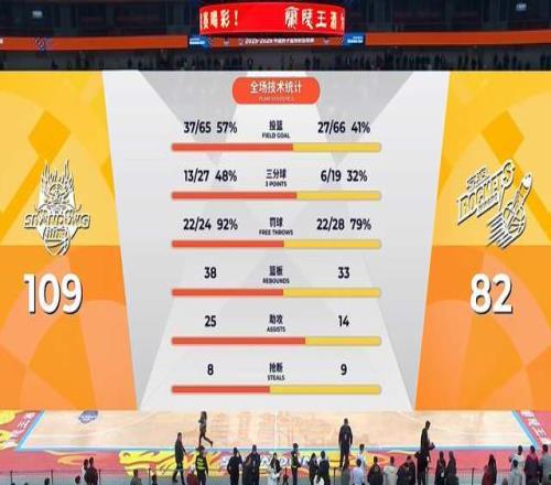 末节决战,山东男篮继续火力全开,上来轰出一波18-0,把领先优势扩大到了30+。最终,山东男篮主场以109-82大胜宁波队,豪取8连胜,排名继续上升。