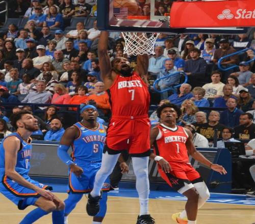 2人太致命!火箭4855雷霆,杜兰特13中3单打过多!