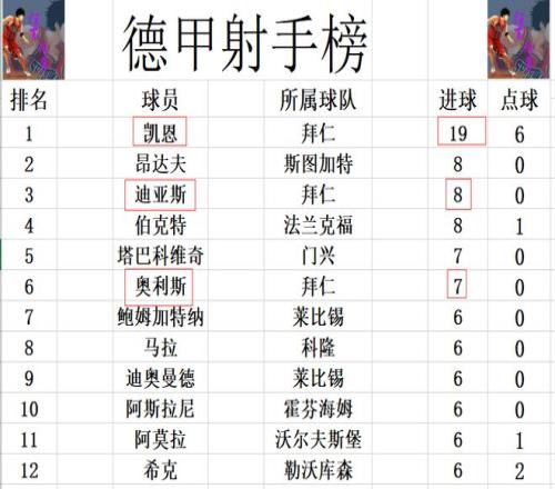 积分榜方面,拜仁在上轮领先多特9分,并多了20多个净胜球的情况下,其实就可以说是已经提前锁定半程冠军,今天大胜海登海姆后,拜仁还是领先多特9分,明确拿到了这个赛季的半程冠军。照这个势头来看,下半程多特,勒沃库森估计也很难追上来,甚至拜仁会将差距越拉越大。