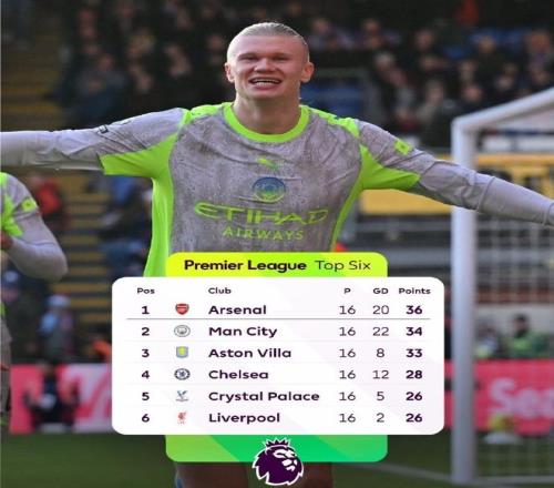 英超最新积分战报曼城维拉赢球紧追阿森纳利物浦切尔西曼联争4