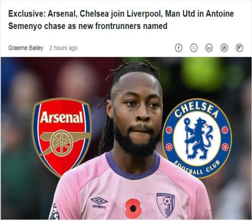 曝阿森纳加入塞梅尼奥争夺战英超5大豪门冬窗抢他