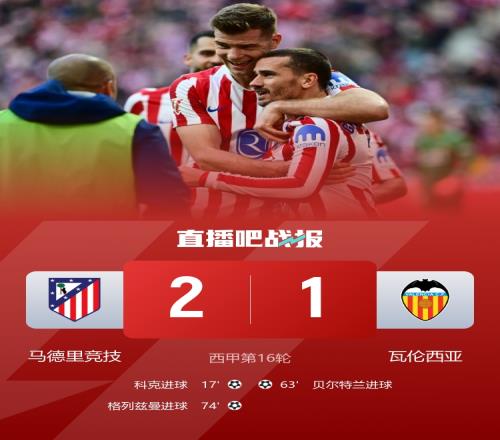 西甲赛场马竞逆转瓦伦西亚止住连败格列兹曼替补发威科克破门如虹_西甲直播